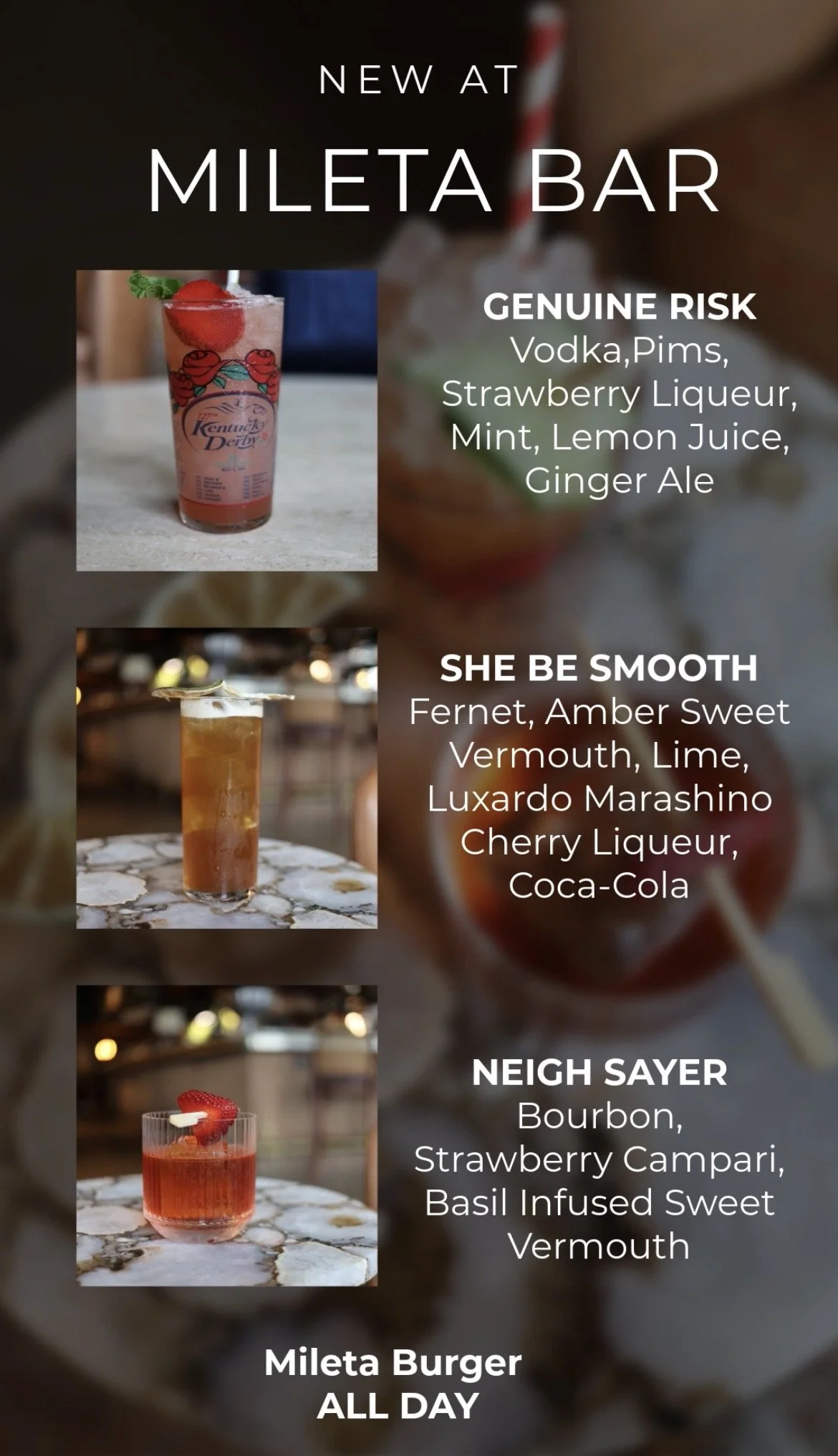 Everything from the drinks, to the food, and the absolutely spot on service were incredible. With so much care and attention to detail in all of those aspects, Mileta made a birthday night for my girlfriend absolutely extraordinary and I can’t thank the staff enough. Mileta does a class A job of creating a wonderful environment to be completely focused in on the dining experience to me there’s not a bad seat in the house.